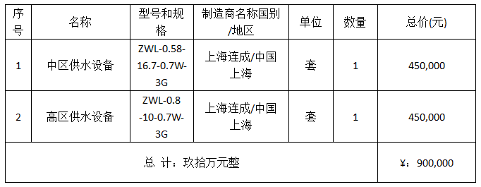受湖北松滋tapplay登录入口有限公司的委托,湖北中兴方和工程咨询有限公司于2019年11月11日对湖北松滋tapplay登录入口有限公司金投•奥体庄园项目无负压供水设备项目采用竞争性磋商方式进行采购,现将本次采购的成交结果公告如下: