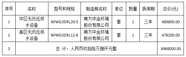 二、项目名称:湖北松滋tapplay登录入口有限公司金投•奥体庄园项目无负压供水设备项目(第二次)