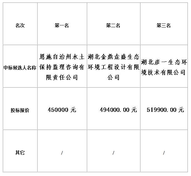 尚含绿城等项目进行水土保持方案编制等服务采购项目于2020年1月15日发布询价邀请函,2020年1月20日在金松集团开评标室开标。根据评标小组提交的评标结论,实施单位已经确认开标结果,现进行中标候选人公示。